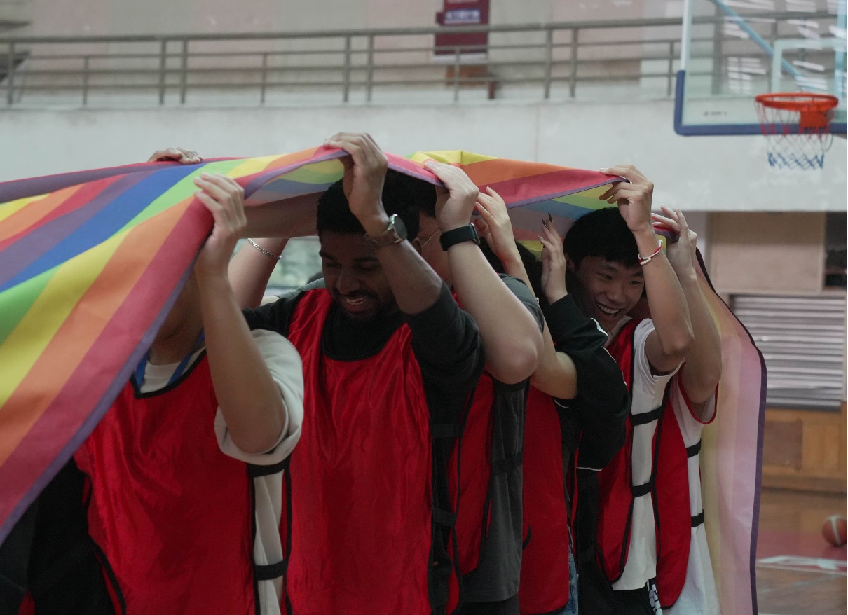 活动设置了“袋鼠跳”“风火轮”“数字抱团”和拔河比赛等环节,同学们在游戏中积极互动,现场气氛热烈,欢声笑语不断。来自泰国的Faran Tari(王发林)同学分享道:“这次活动让我真正懂得了团结就是力量。同学们来自不同国家,让我感受到每个国家都有独特的文化,也结交了很多朋友。同时,这次经历让我们的汉语和英语能力都有了很大进步!”Kawinnart Srichompoo(郦陵容)同学也表示:“I have a lot of fun today, because we have so many activities. For example, we students jump within the bag, so I've found it so interesting.”