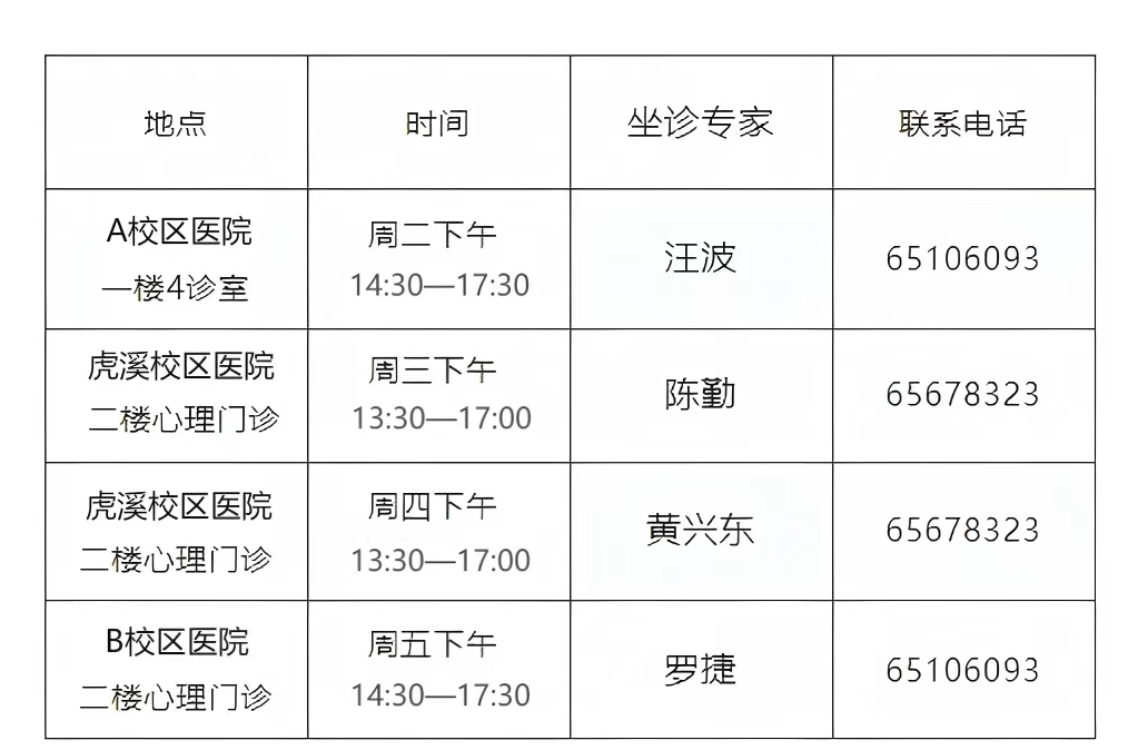(注:具体安排以校医院官微的最新信息为准。寒暑假暂不提供心理门诊服务。)